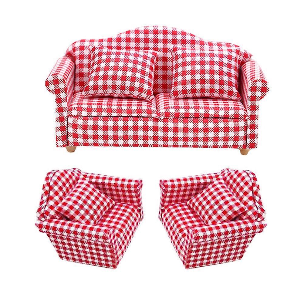 Mini Plaid Sofa Set 3Sets Assorted Color Cotton Fabric with Pillows Vivid and Lifelike for Decor