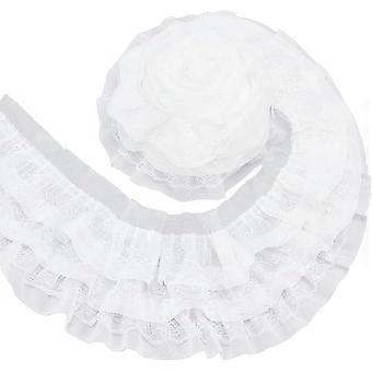 2.73 Yards 3-Layer Ruffle Lace Trim, 5-1/8" Wide White Chiffon Flower Ribbon for Wedding, Sewing, DIY Craft Decor
