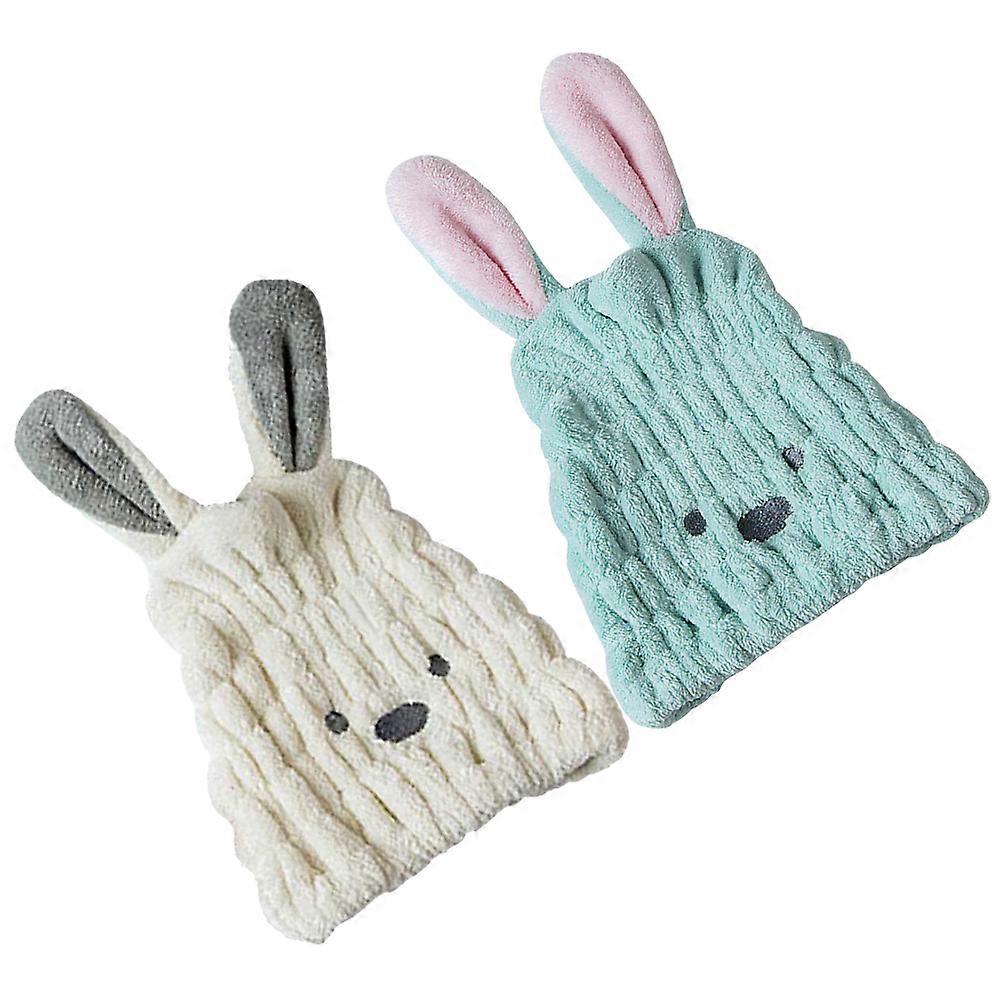Bunny Ears Hair Drying Caps Women General Users Beige 2Set