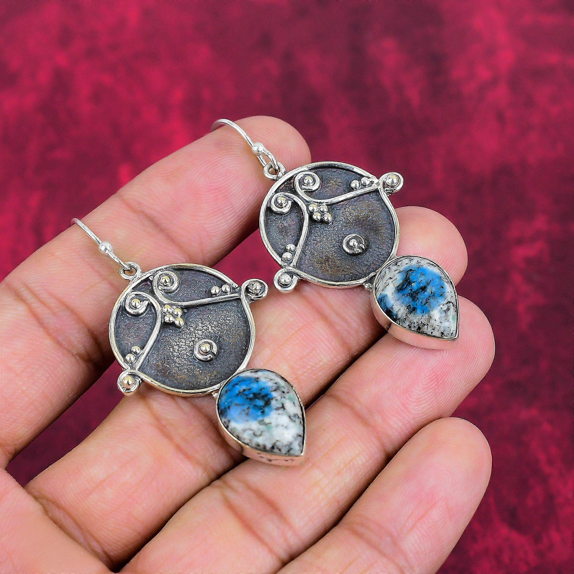 K2 Azurite Earrings, 925 Solid Sterling Silver Gemstone Jewelry, Handmade Earrings, For Thanksgiving