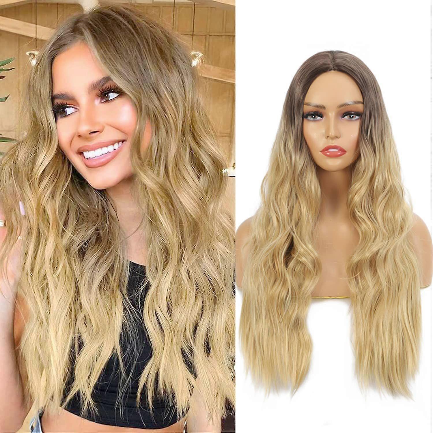 Long Blonde Wavy Wigs Long Curly Wigs for Women Ombre Blonde