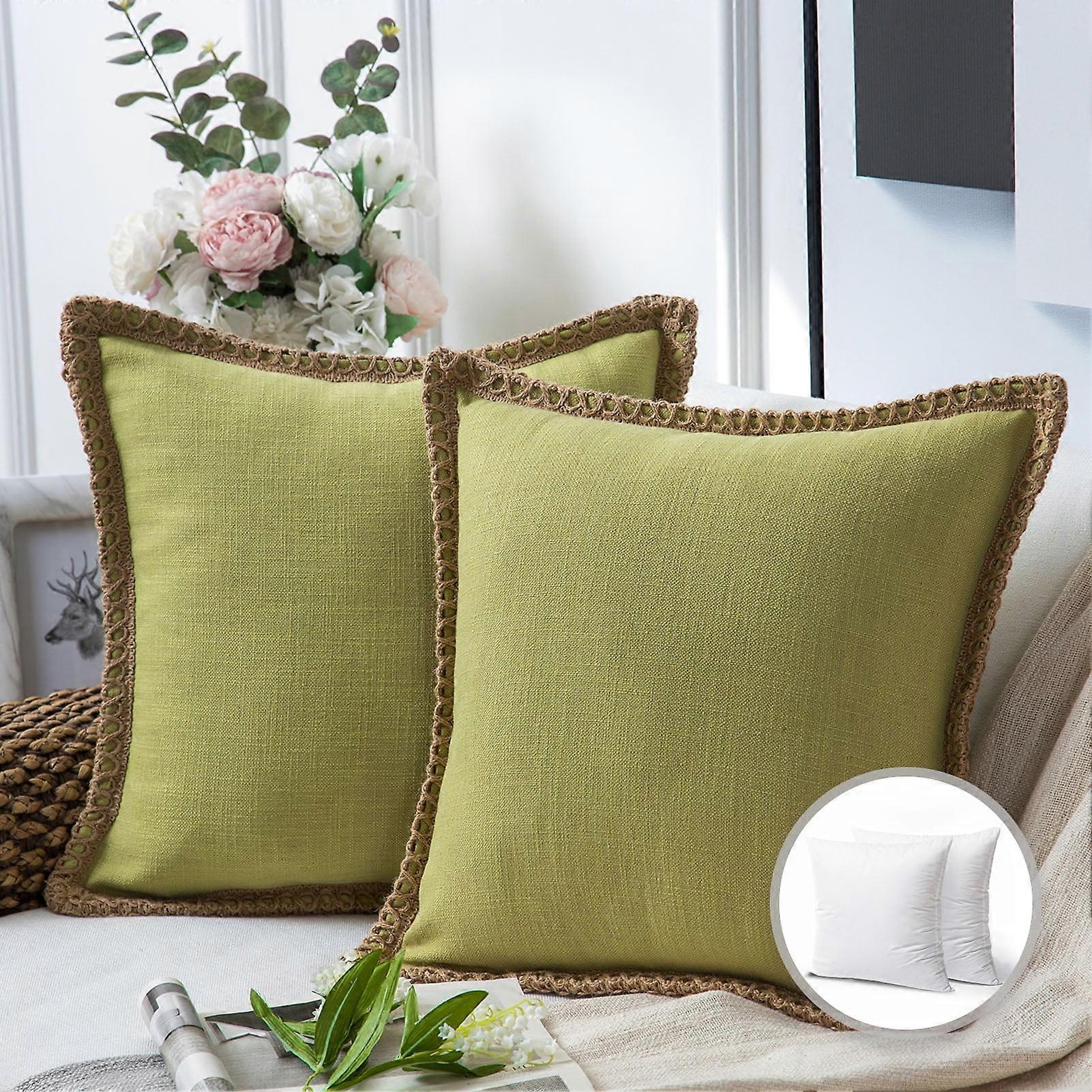 Phantoscope Farmhouse Burlap Linen Tailored Edge Series Decorative Throw Pillow, 20" X 20", Light Green, 2 Pack