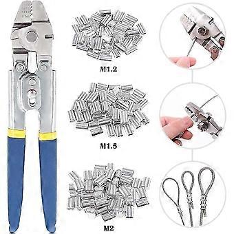 Pinza a crimpare per cavi in acciaio fino a 2,2 mm con doppio manicotto in alluminio da 150 pezzi e Kit_SZXM combinato in alluminio di 3 dimensioni