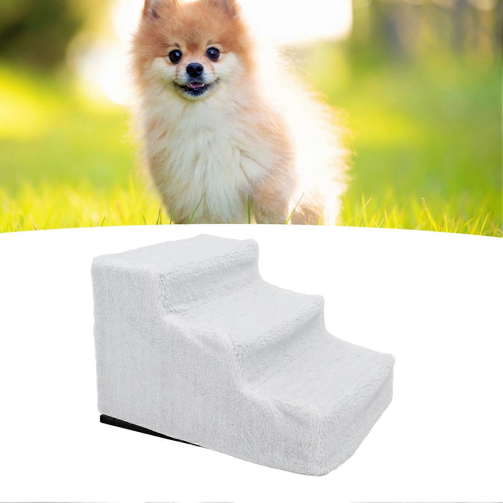 Plastic Dog Ramp with Fleece Surface, Non-Slip White Steps for Pets