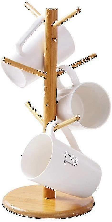Mug Holder Tree, Coffee Cup Holder, Bamboo Mug Tree Stand, Coffee Cup Rack Dryer With 6 Hooks