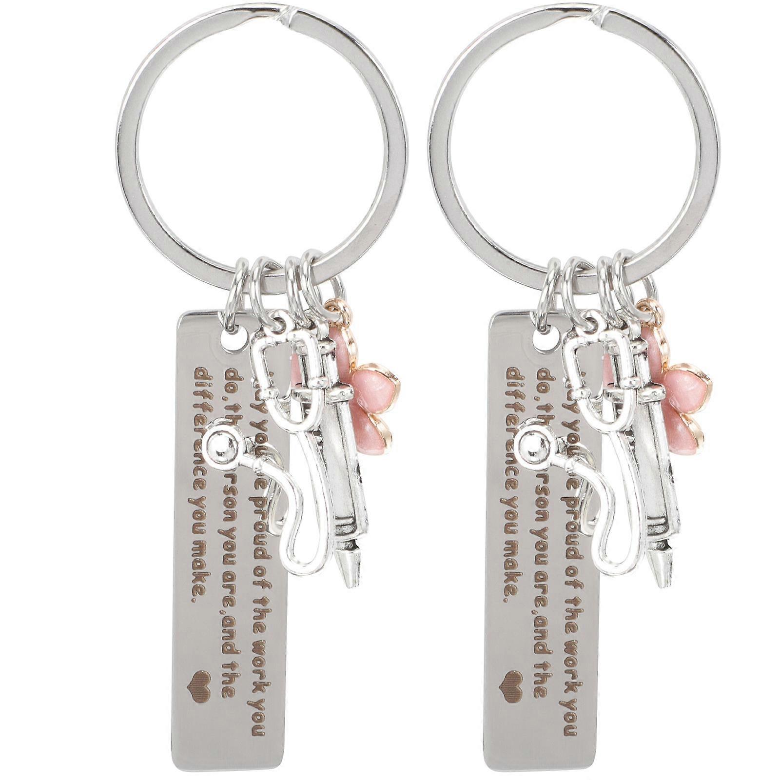 Nurse Keychains 2Pcs Metal Syringe Stethoscope Key Ring Decoration For Nurses And Nursing Students Silver Color Durable Texture