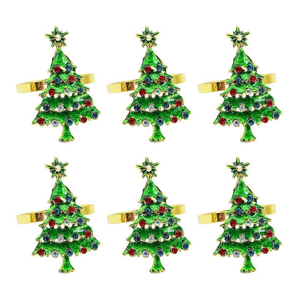 Green Christmas Tree Napkin Ring Paper Towel Ring for Table 6Pcs