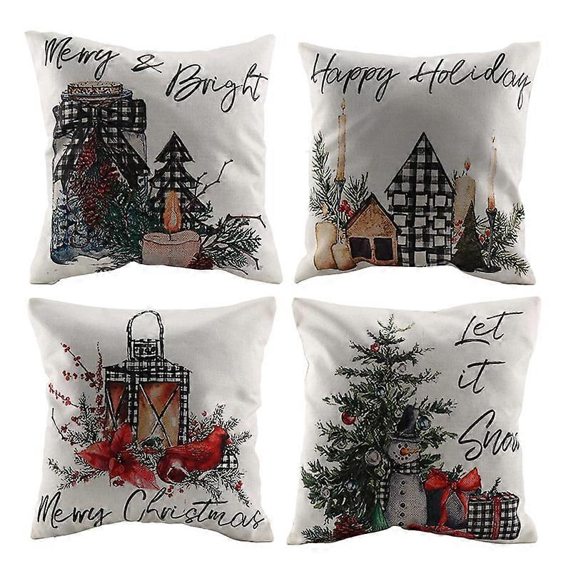 Qtmnekly Christmas Throw Pillow Covers 18X18 Set of 4, Check Tree Cushion Case Decoration for Sofa Couch