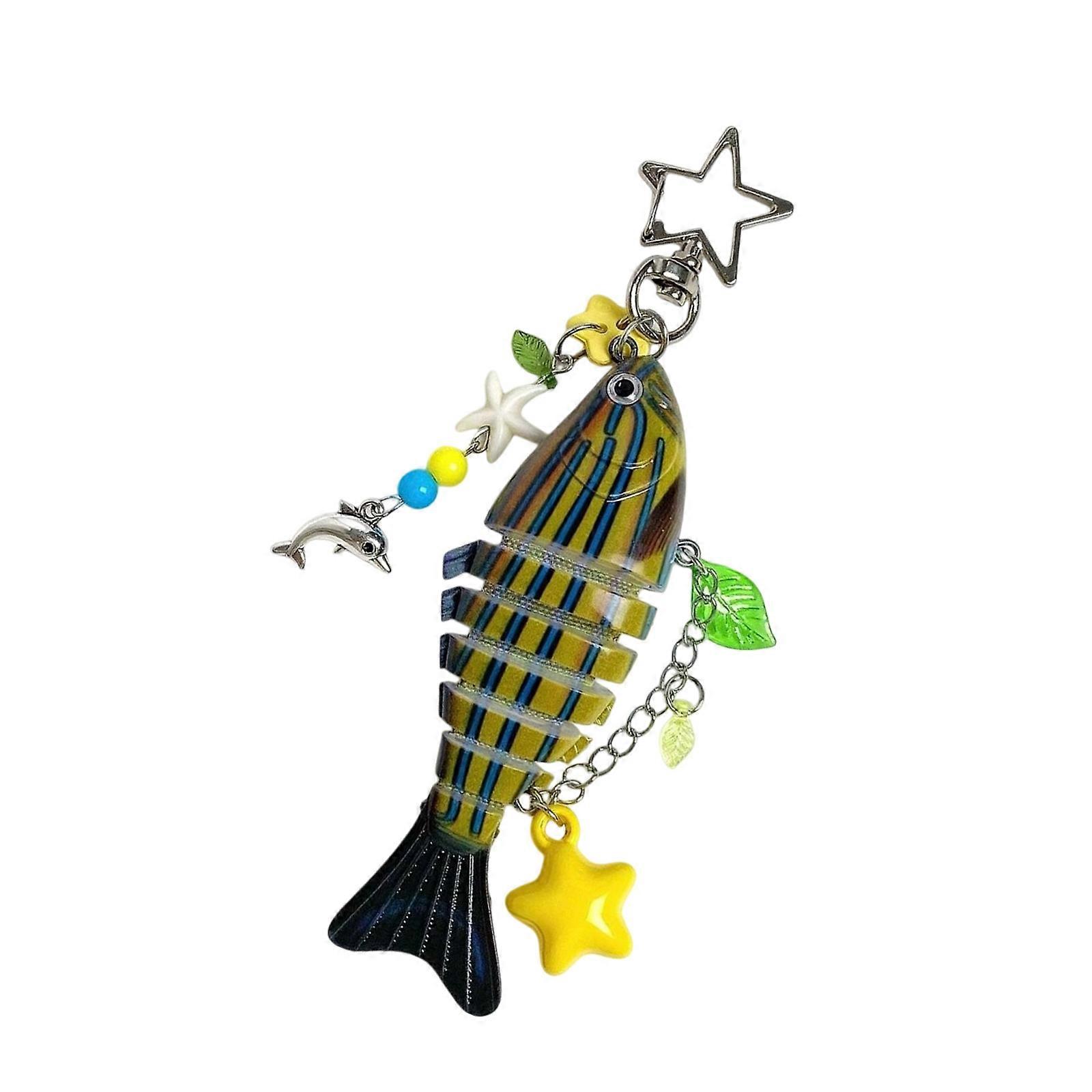Retro Style Beaded Phone Lanyard Key Chain With Fish And Star Charm Resin Multiuse bag Decoration for Wallet Yellow