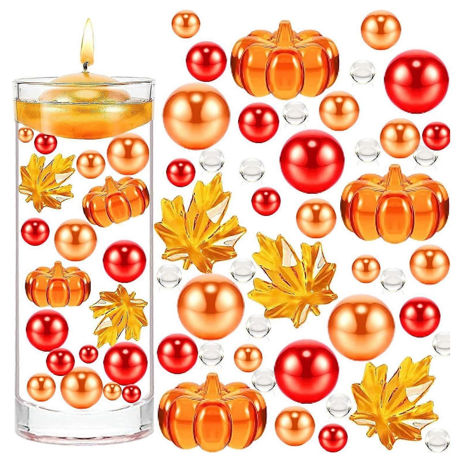 Thanksgiving Vase Filler Set Faux Pearls Pumpkin Maple Leaves Beads Floating Candle Centerpiece for Thanksgiving Fall Harvest Decor