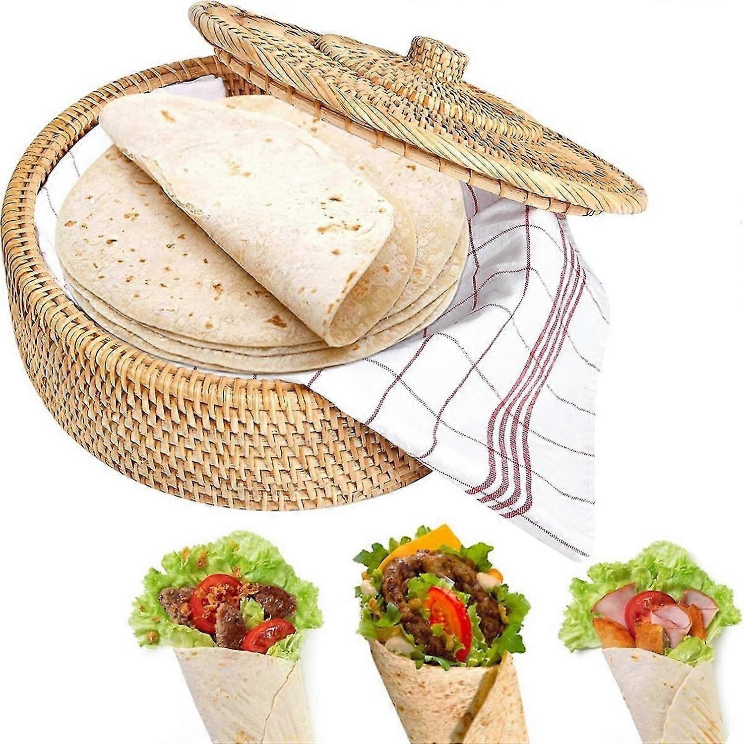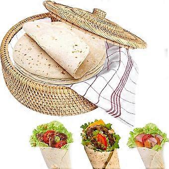 Round Rattan Boxes with Lid Hand-Woven Multi-Purpose Wicker Tray 10.2Inch Picnic Food Bread Table St