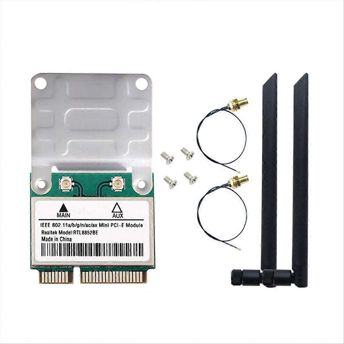 RTL8852BE WiFi 6 Network Card with 8DBI Antennas BT 5.2 Mini PCI-E AX1800 Dual Band 2.4G/5GHz Adapt