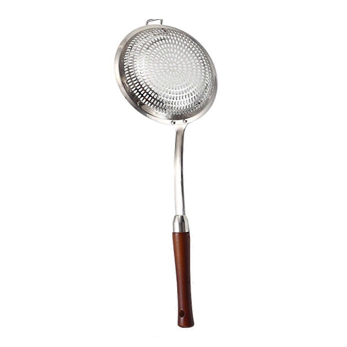 Colander strain spoon colander, 42.5cm 304 stainless steel trough spoon filter cooking net spoon sieve spoon with long mahogany handle, used in kitche