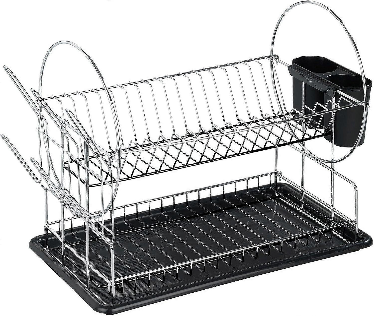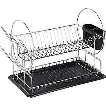 Practical helper when washing up: The space-saving dish rack holds the dishes after washing so that they can dry perfectly Versatile: The compact dimensions of the dish rack are ideal for storage next to the sink in the The practical dish drainer can be used in the kitchen, but also in the garden kitchen or as a camping accessory Lots of space for dishes: the dish rack consists of a 2-level draining grid with a plate stand on top and a holder for cups, Glasses and bowls below as well as a removable cutlery box for cutlery and small parts With drip tray: In addition to an additional side cup holder for 6 cups, the dish rack has a plastic draining board with an anti-slip effect that is easy to clean and ensures a dry work surface