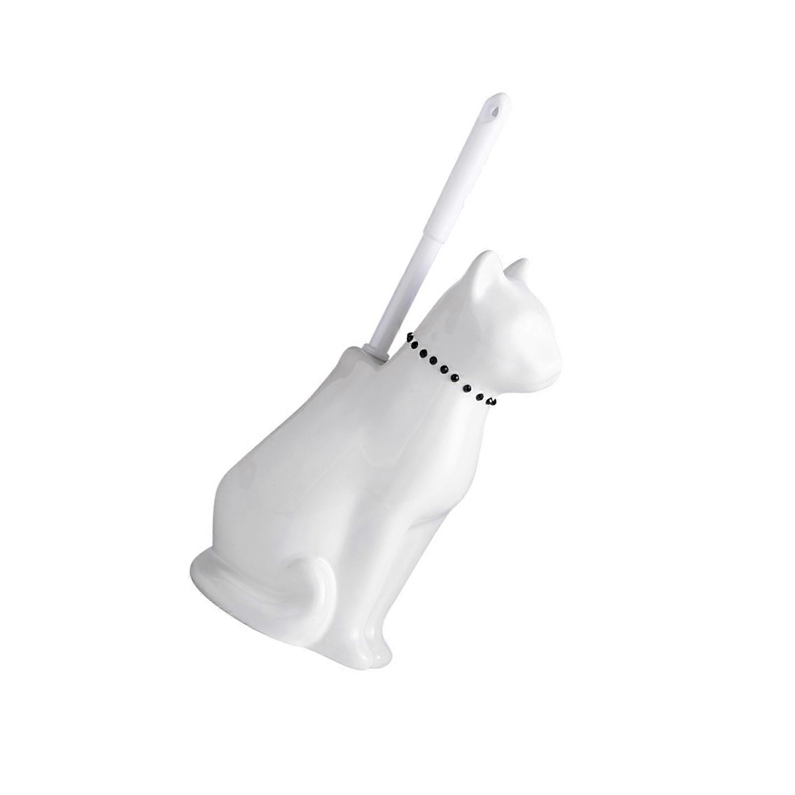 Soft Bristles Toilet Cleaning Brush Freestandin Toilet Brush with Holder Ceramic Cats Base Toilet Bowl Brush Easy to Use White