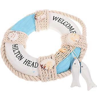 Blue Wooden Life Ring Wall Hanging Ornament for Nautical Decor