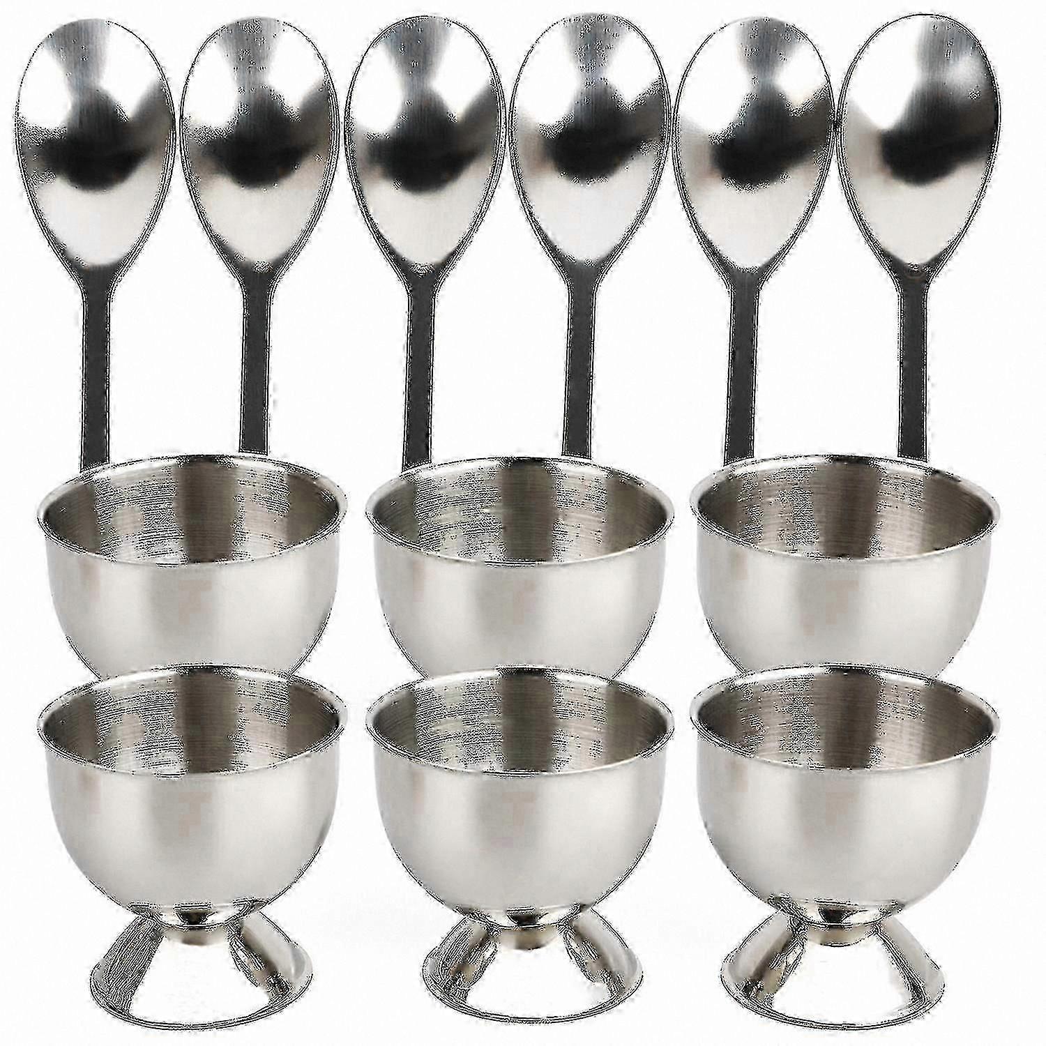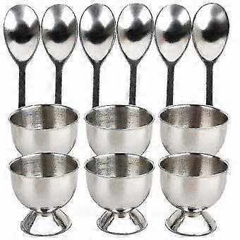 Set of 12 Stainless Steel Egg Cups with Holders and Spoons for Breakfast Serving