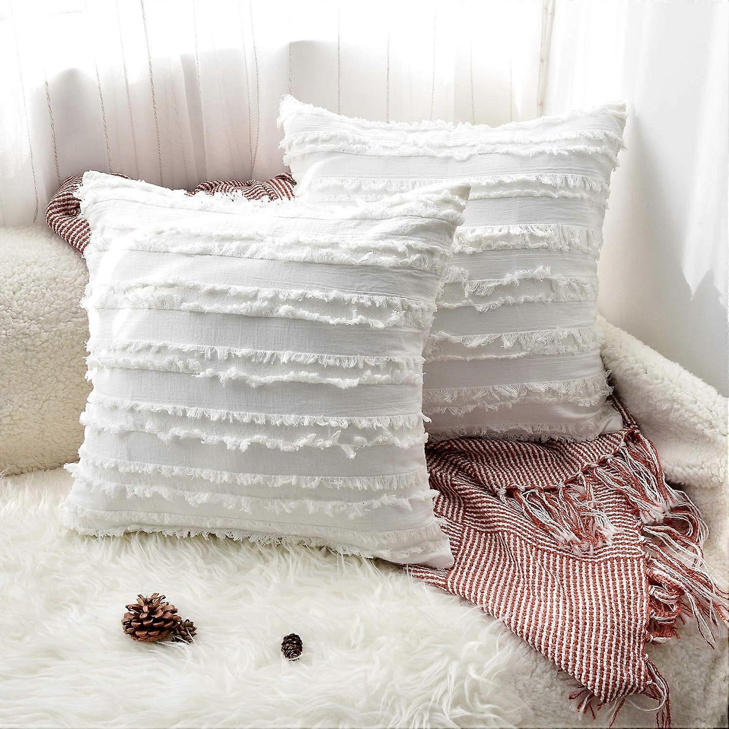 Set of 2 Pillow Cushion Covers, Decorative Tassel Design Cotton Cushion Covers, Cushion Covers, Square Throw Pillow Cushion Covers for Cars Couch Sofa