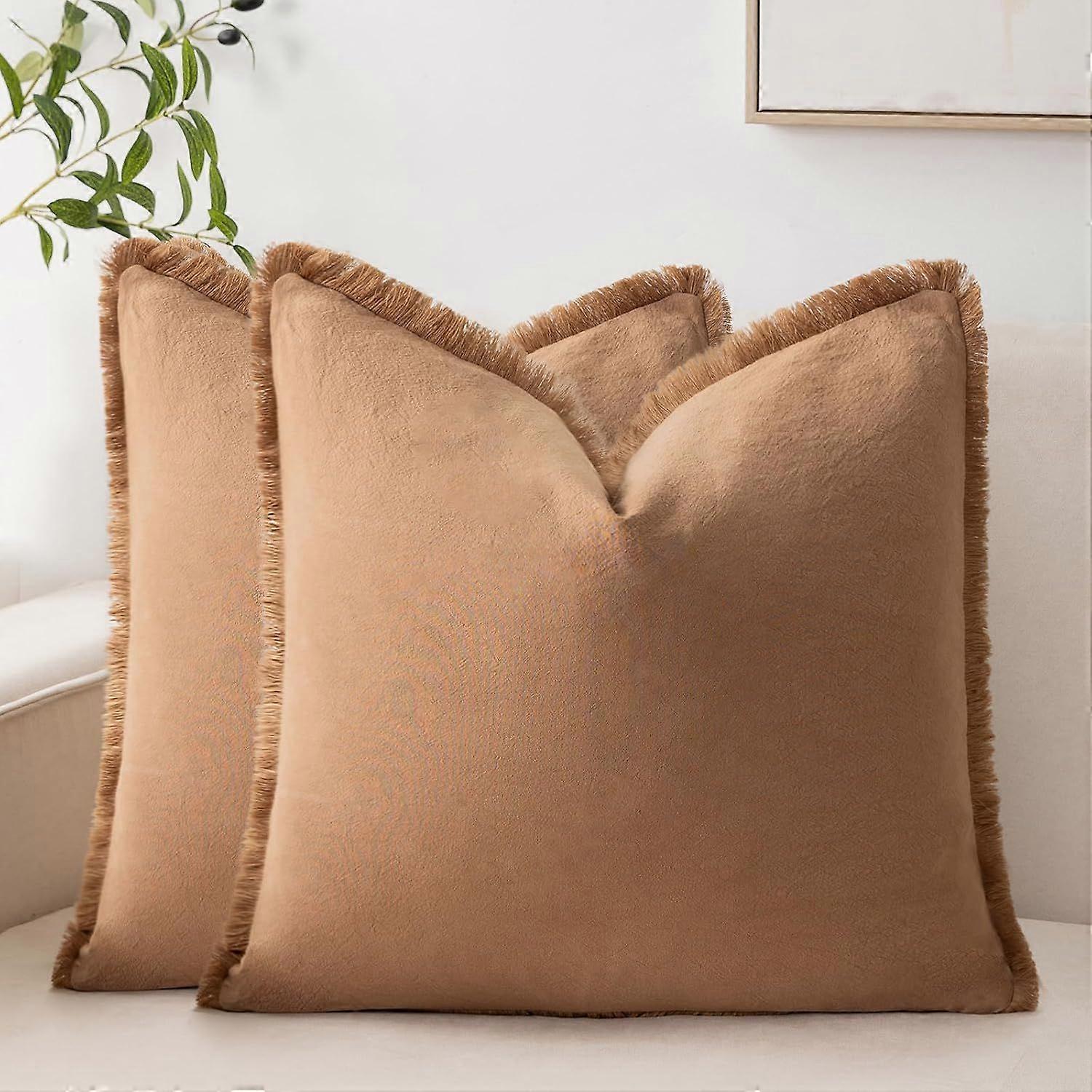 Set of 2 Square Pillow Covers, 20x20 Cotton Throw Pillow Cover with Fringe