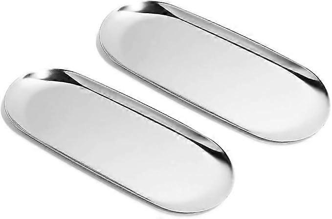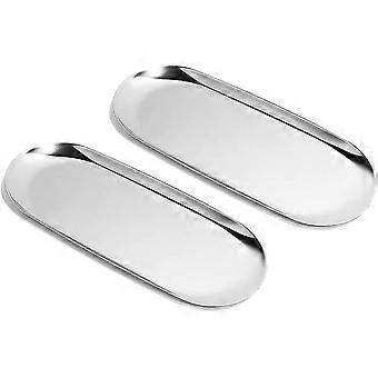Set of 2 Silver Stainless Steel Oval Trays for Storing Napkins, Tea, Fruit, Cosmetics, Jewelry (Large x 2)
