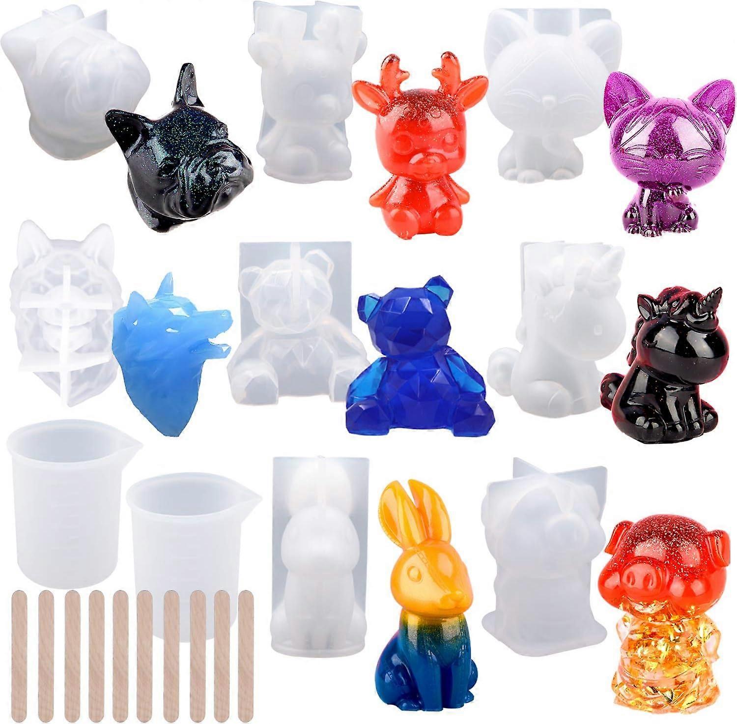 20Pcs 3D Animal Resin Molds Tools Set Includes 8 Resin Casting Molds Large Clear Unicorn Epoxy Silicone Molds