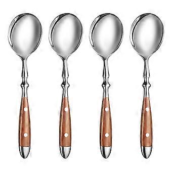 4Pcs Soup Spoons Set,Stainless Steel Spoons with Comfortable Bakelite Handle,Heavy-Weight Metal Round Spoons