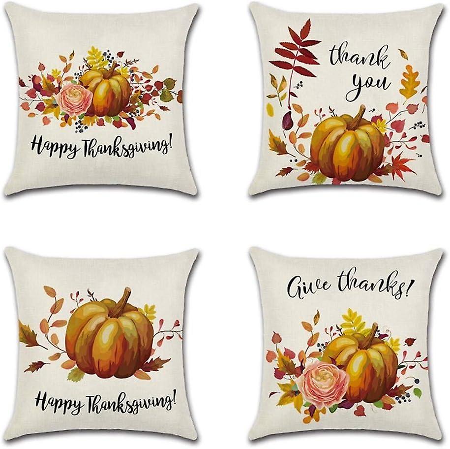 Set of 4 Cushion Covers Autumn Theme Cotton Linen Cushion Covers
