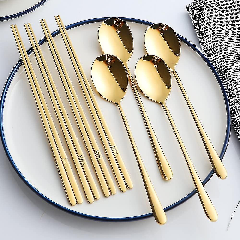 Chopsticks Spoon Set, 4 Color Reusable Metal Stainless Steel Korean Chopstix Spoon Set Christmas Gift