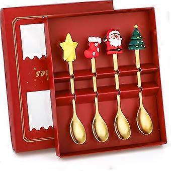4 Piece Christmas Spoon Set, Gold Cutlery Set, Stainless Steel