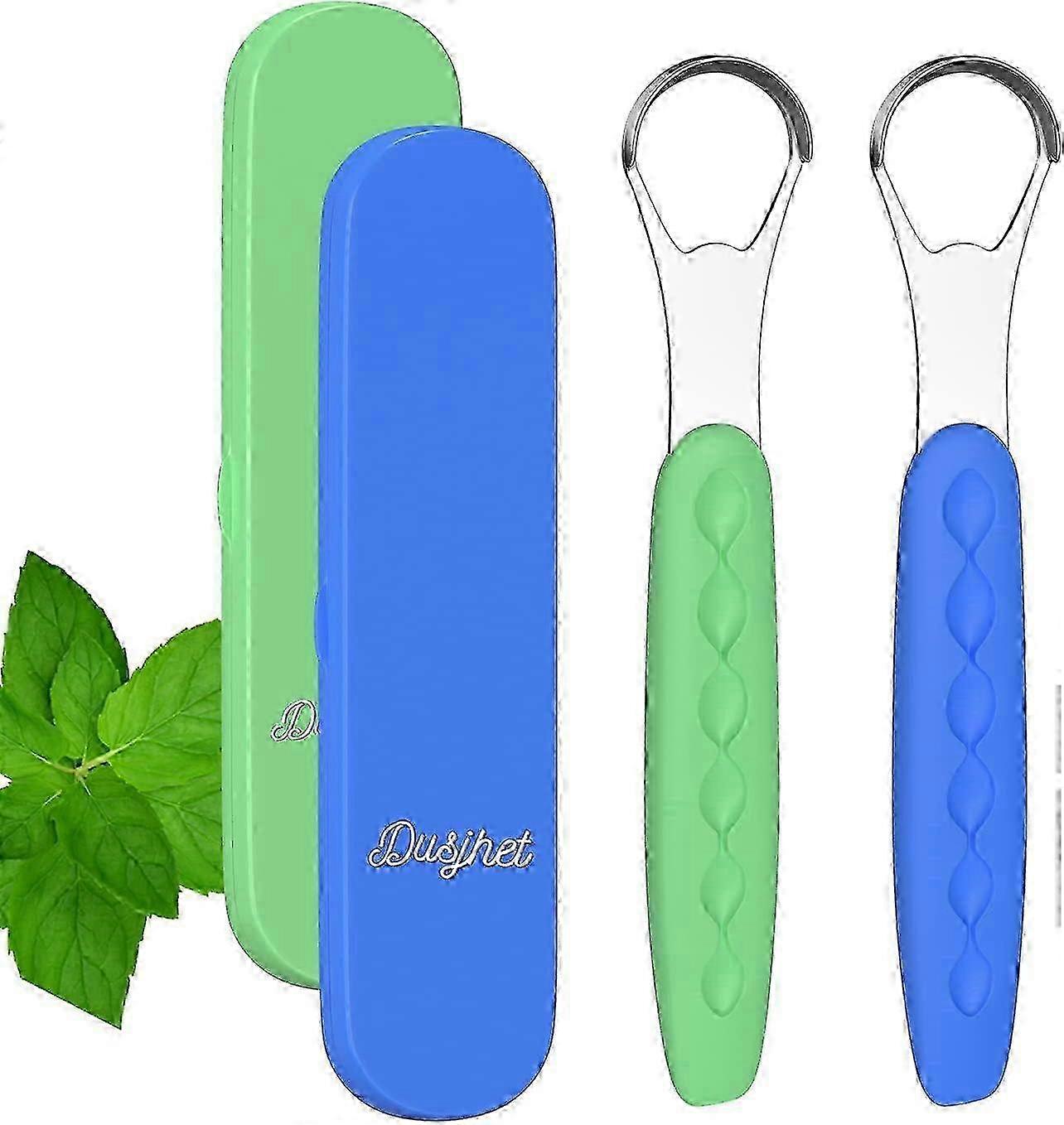 Stainless Steel Tongue Scraper Set for Bad Breath - 2-Pack with Travel Case for Fresh Breath & Oral Hygiene on the Go