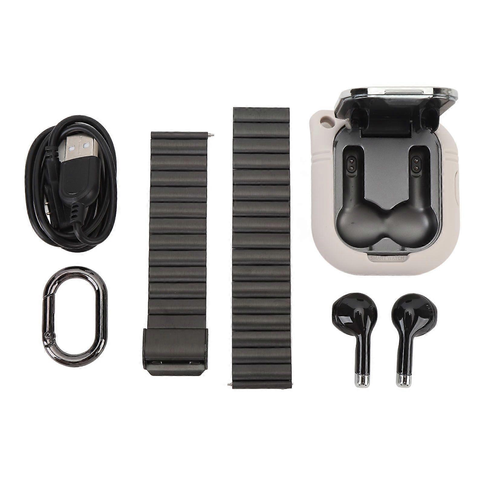 2.01in TFT Smartwatch with Earbuds 2 in 1 NFC Smart Sports Watch Wireless Bluetooth Earphone Support Step Counting Fitness Tracker Silver with Steel S