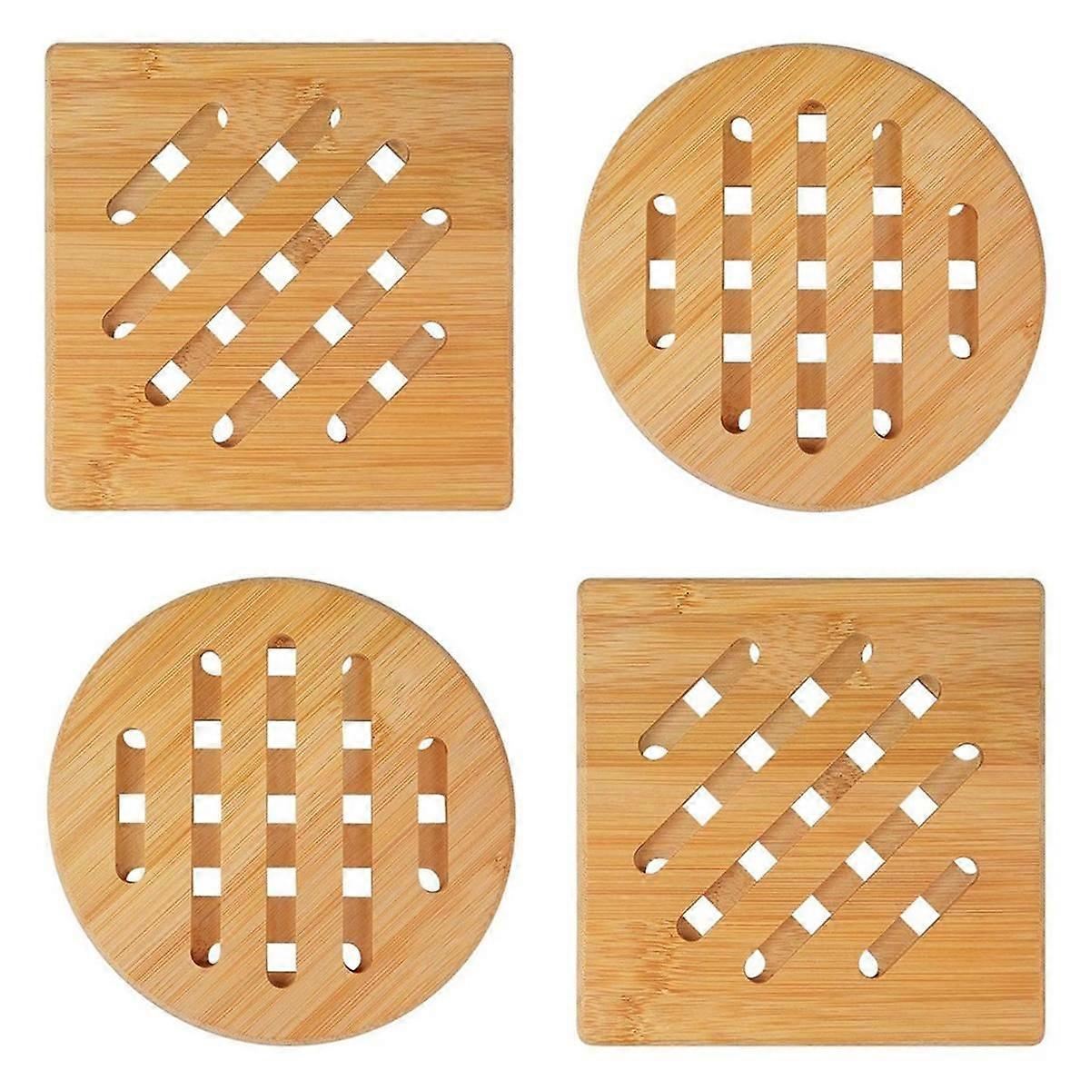 Bamboo Pot Coasters,Heat-Resistant Bamboo Place Mats, Square and Round Pot Coasters Made of Wood, f