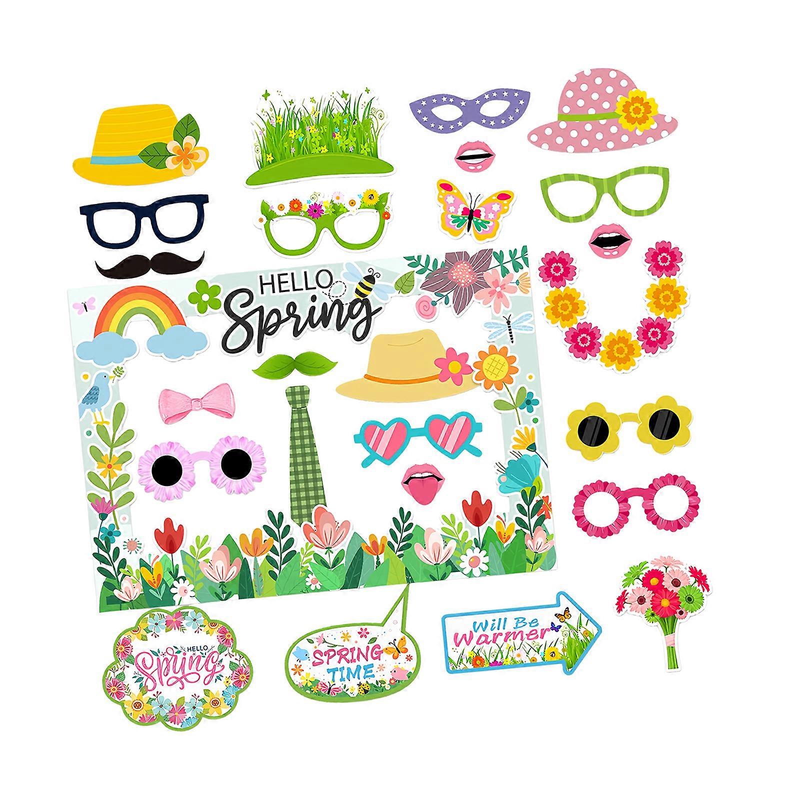 Spring Celebration Handheld Photo Props Funny Mustach Glasses Decorations for Parties and Instants Fun Multicolor