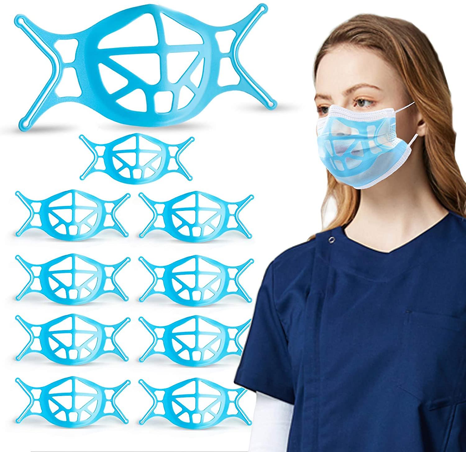 Upgraded 3D Silicone Face Mask Bracket - Washable Reusable (Blue)10 Pack