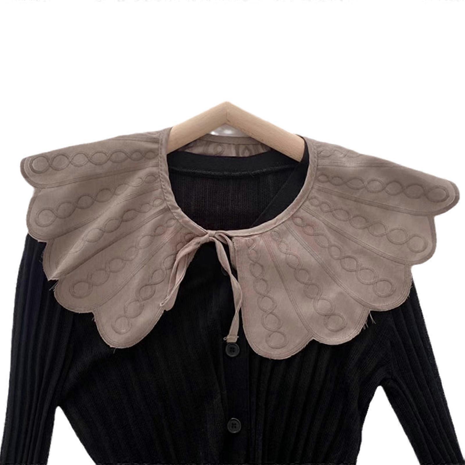 Korean Style Women Solid Color Fake Collar Scarf Wrap Geometry Twist Circle Pattern Lace-Up Shawl Neckwear Capelet Circle khaki