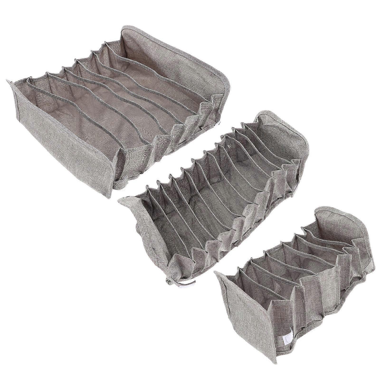 Underwear Storage Holder 3Pcs Drawer-Shaped Organizers Grey Simple Fabric For Home Organization