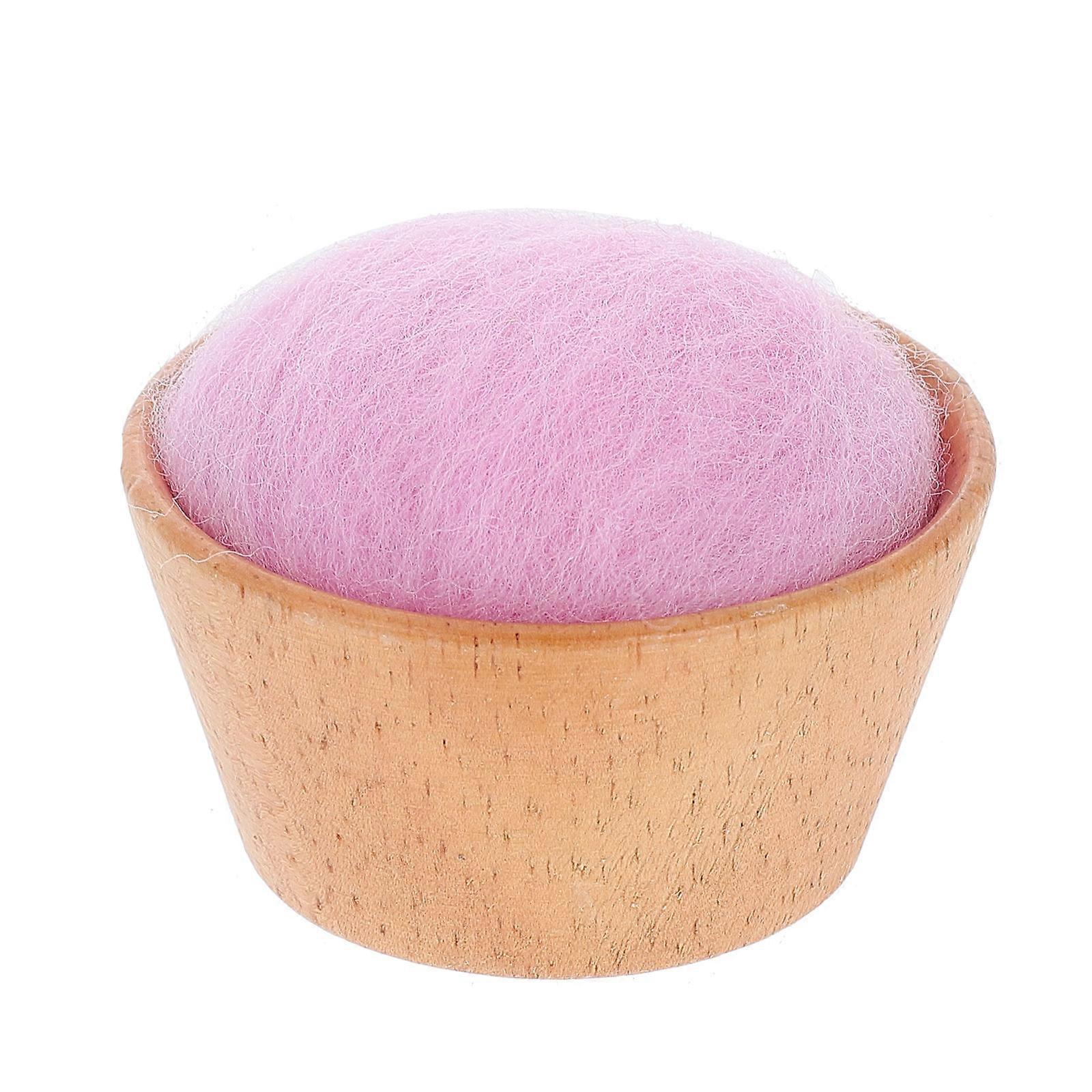 Needle Cushion Wool Pin Holder with Wooden Base for Sewing 2Pcs Kit