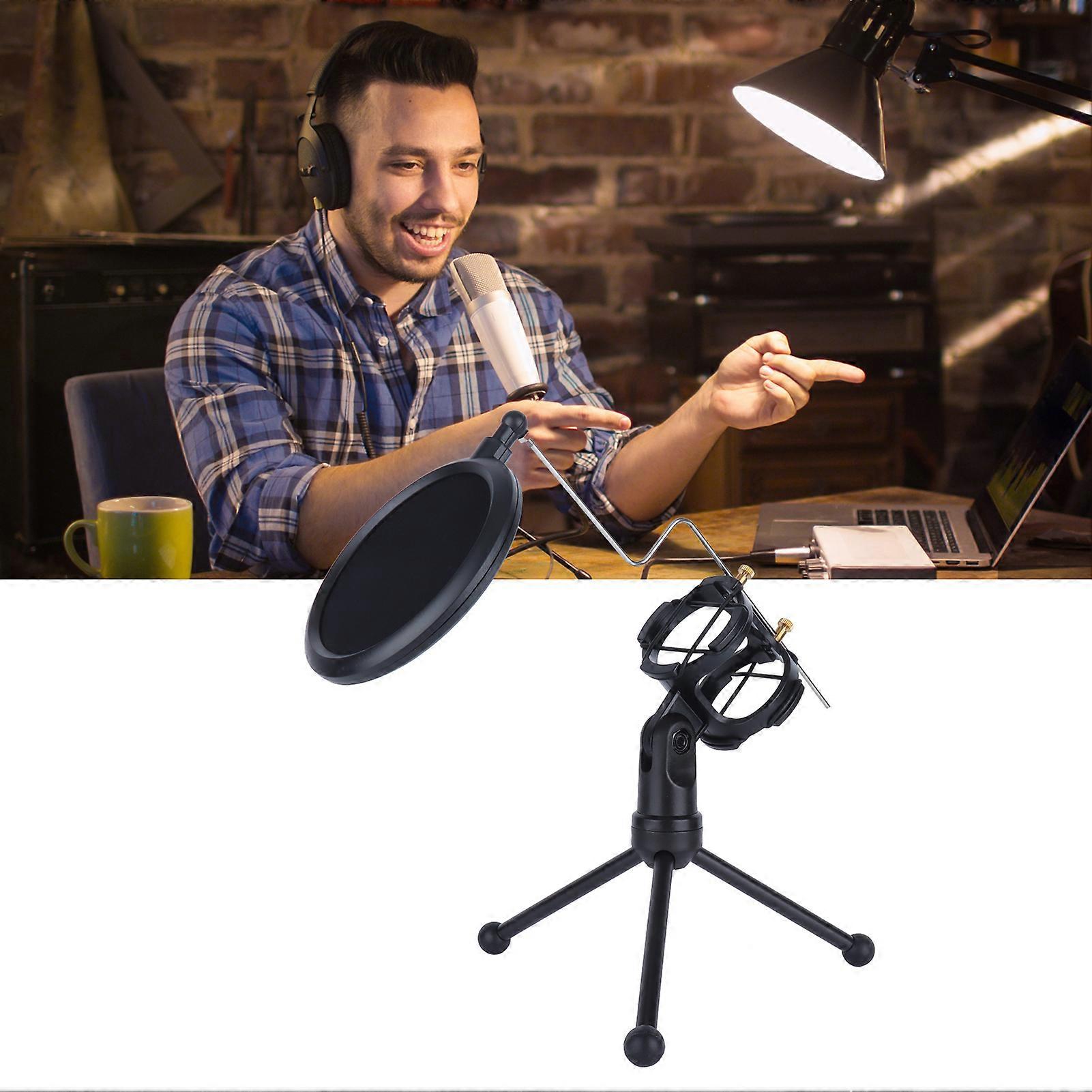 Microphone Tripod Stand with Shock Mount & Blowout Cover Black