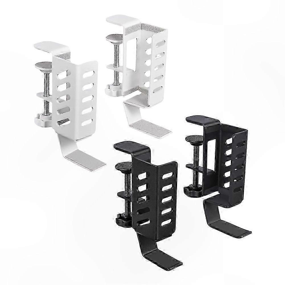 Adjustable Design: The distance between the two desk side holders can be adjusted according to the length of the items you need to store. This under desk laptop tray can be retrofitted to the side of a desk to easily hold a laptop, tablet, hidden wires, manuals, documents, and other items. Anti-Slip And Anti-Scratch Design: The inner part of our adjustable desk side storage, including the bottom and ends of the clamp, features a non-slip pad that helps secure the laptop in the desk side hanging storage and prevents scratching of desktop, laptops, tablets, or other devices. No Drilling & Easy To Install: Our no-drill desk side storage and under-desk laptop holder are easy to install. This adjustable laptop stand requires no tools or screwdriversimply hand-tighten in minutes. No extra tools are needed, and it does not damage your desk. (Note: Before purchasing, please confirm whether the upper and lower edges of your desk sides are flat and whether the size is suitable for your desk.) High Quality Materials: Our laptop holder is made of scratch-resistant aluminum alloy, ensuring long-term safety for your laptop. A silicone mat protects your laptop or tablet from scratches while keeping it securely in place. High-quality materials and fine craftsmanship provide a practical and visually appealing solution for desk organization. Wide Compatibility: Our adjustable stand is compatible with a wide range of devices, including various laptop models. Color: Black & White Material: Metal Package Contents: 4 * Desk Side Laptop Mount Only the above package content is included; other products are not included. Note: Light reflection and different displays may cause the color of the item in the picture to appear slightly different from the actual product. Measurement may vary by +/- 1-3 cm.