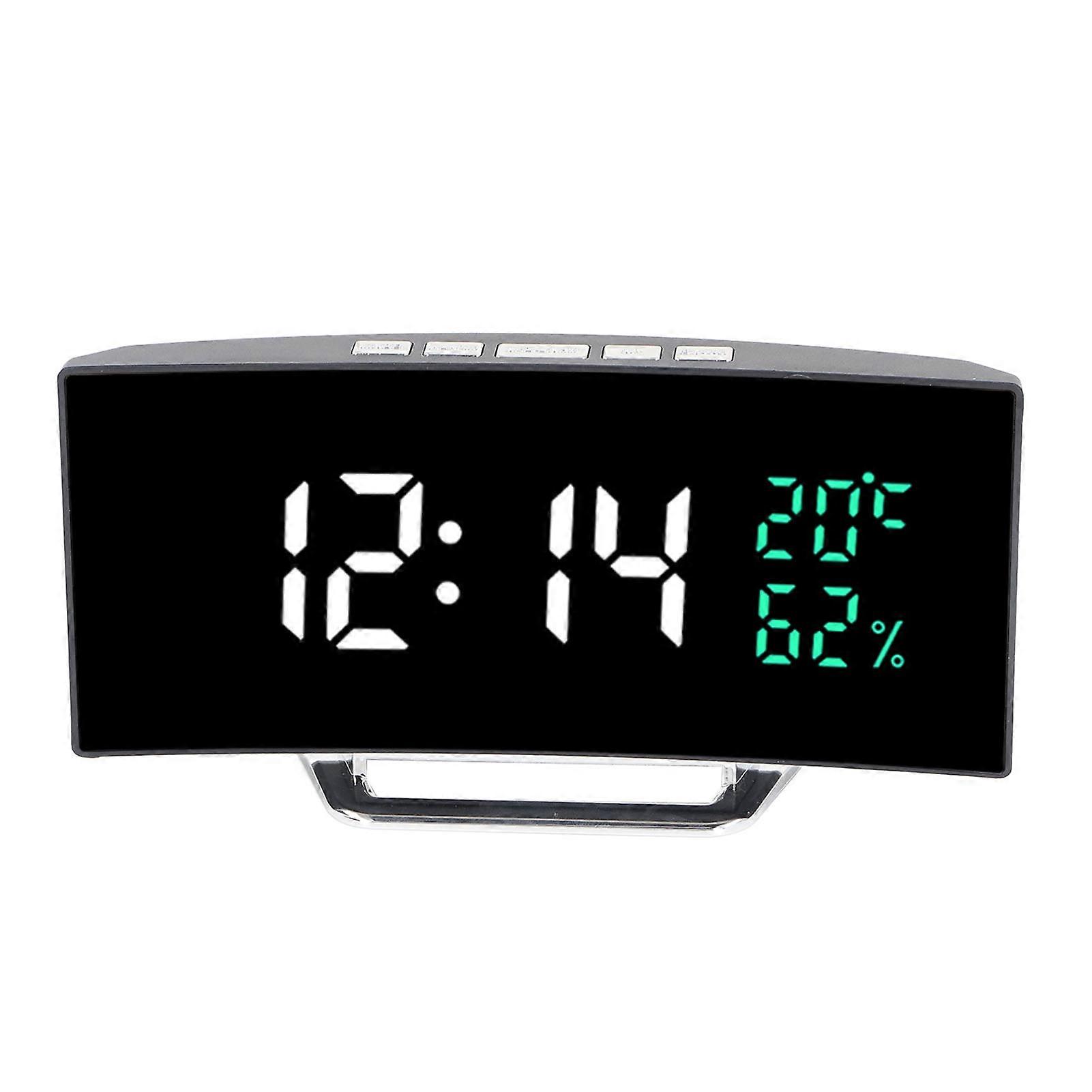 LED Mirror Alarm Clock Curved Screen 12/24H Temp Humidity Display