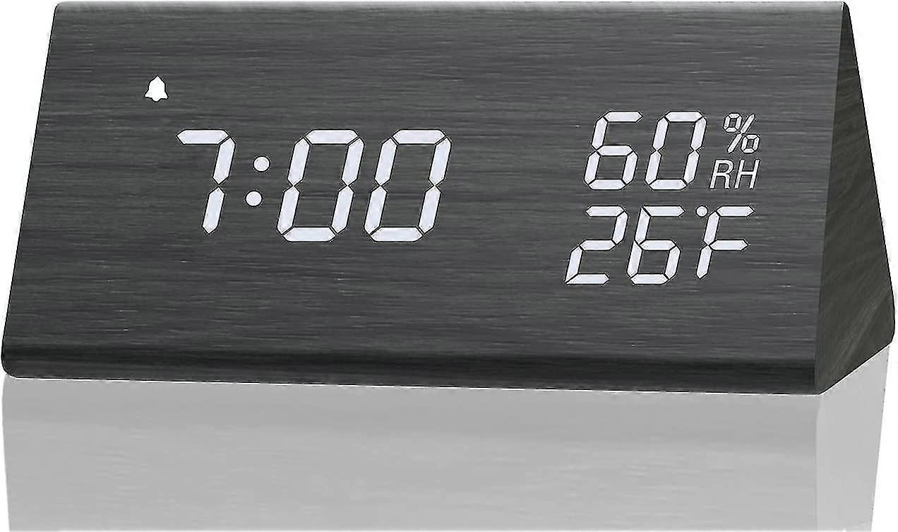 Digital Alarm Clock, With Wooden Electronic Led Time Display, 3 Alarm Settings