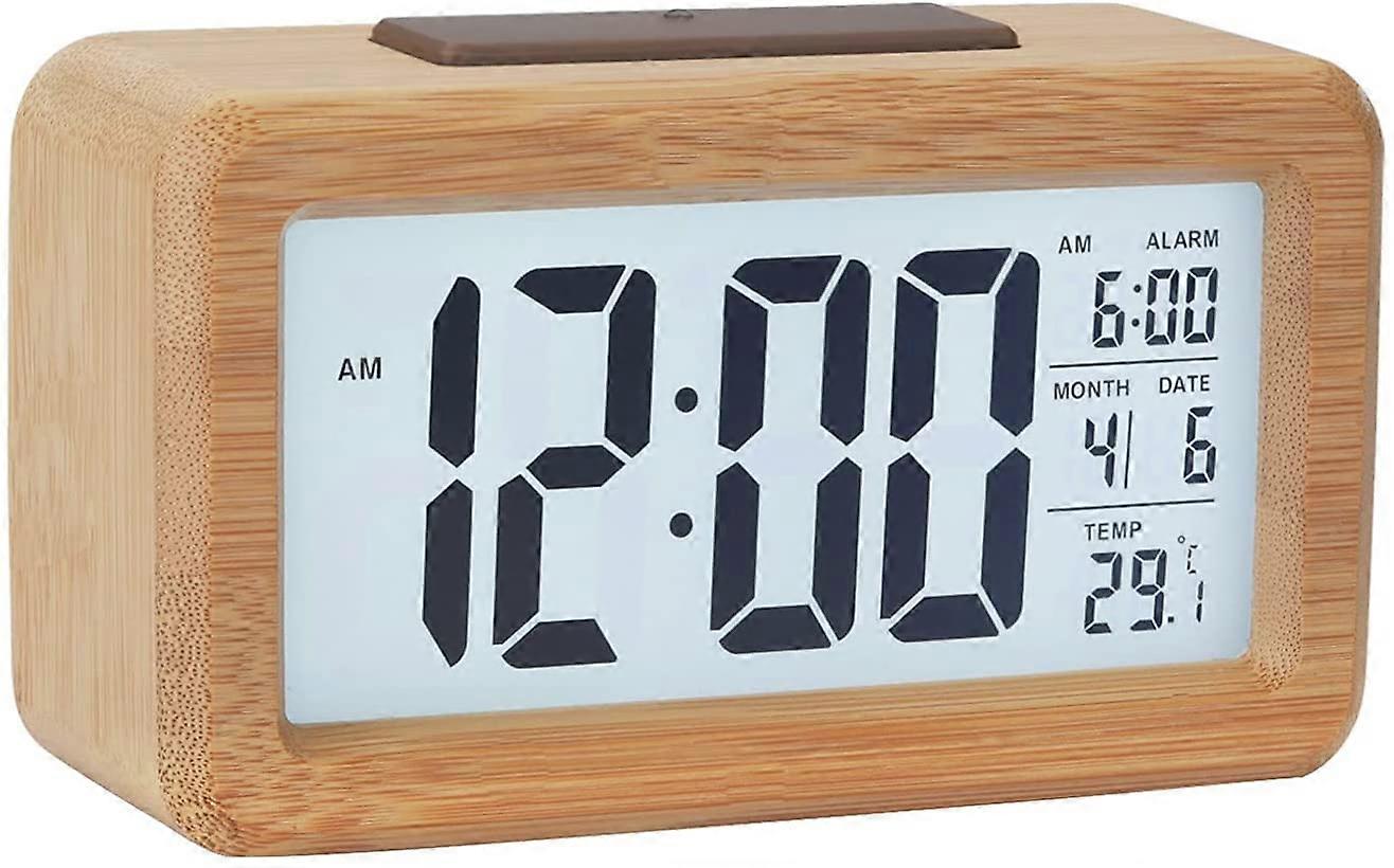 Wooden Digital Alarm Clock,LED Display Wood Grain Alarm Clock,Smart Sensor Night Light