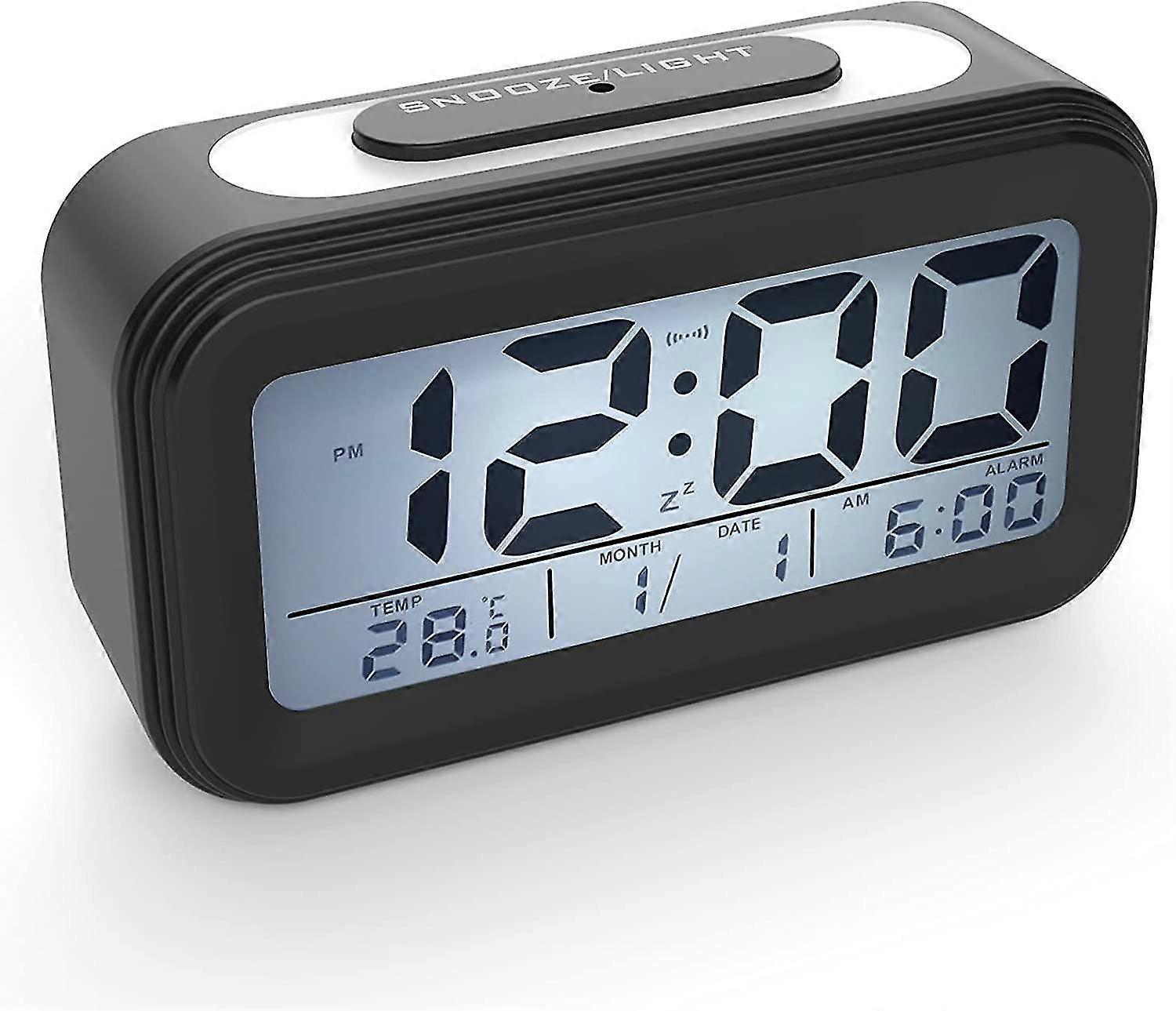 Black Digital Alarm Clock with LED Display, Temperature, Calendar, Battery Operated