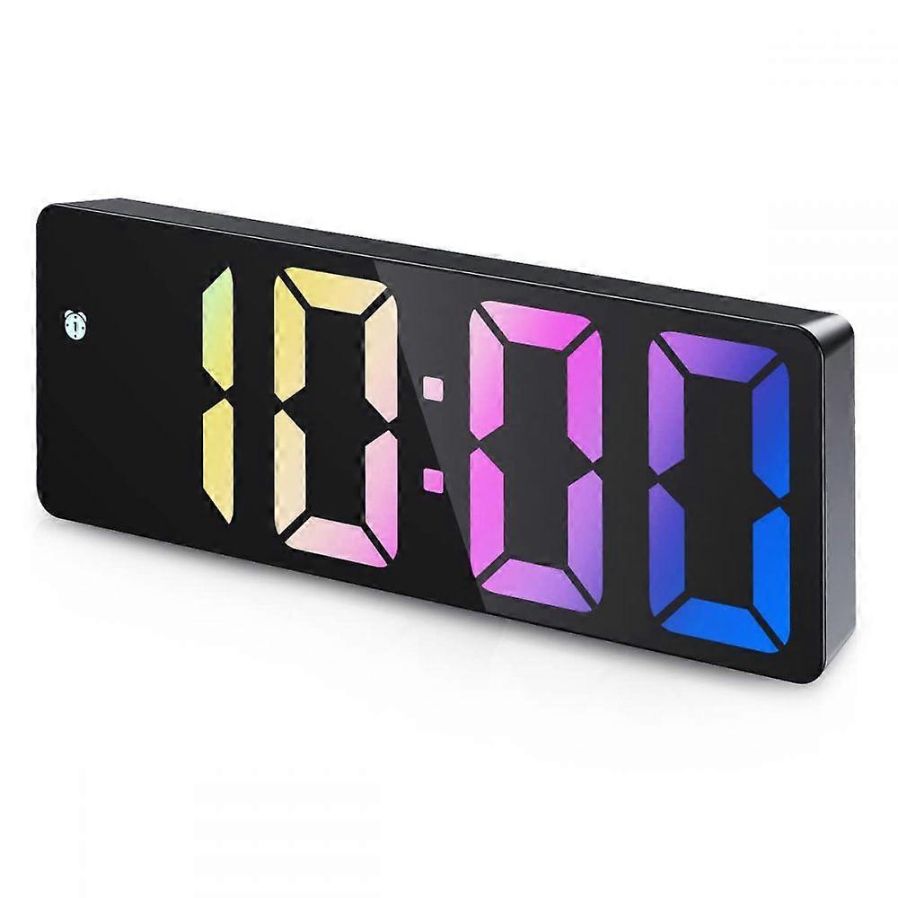 Digital Alarm Clock, LED Screen Displays Temperature and Date, Black Case and Colorful Numbers