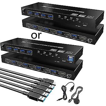 USB3.0 HDMI compatible Kvm switch with 4 USB cables and remote control