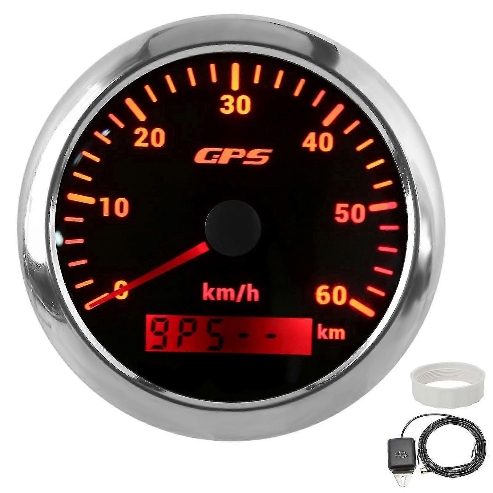 85mm GPS Speedometer Gauge 060KM/H LCD Display Odometer with Adjustable Backlight for Cars Boats 932V DCBlack