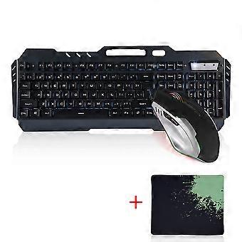 Backlit USB Wired Gaming 104 Key Keyboard & DPI Adjustable Optical Mouse (Black, White Light)