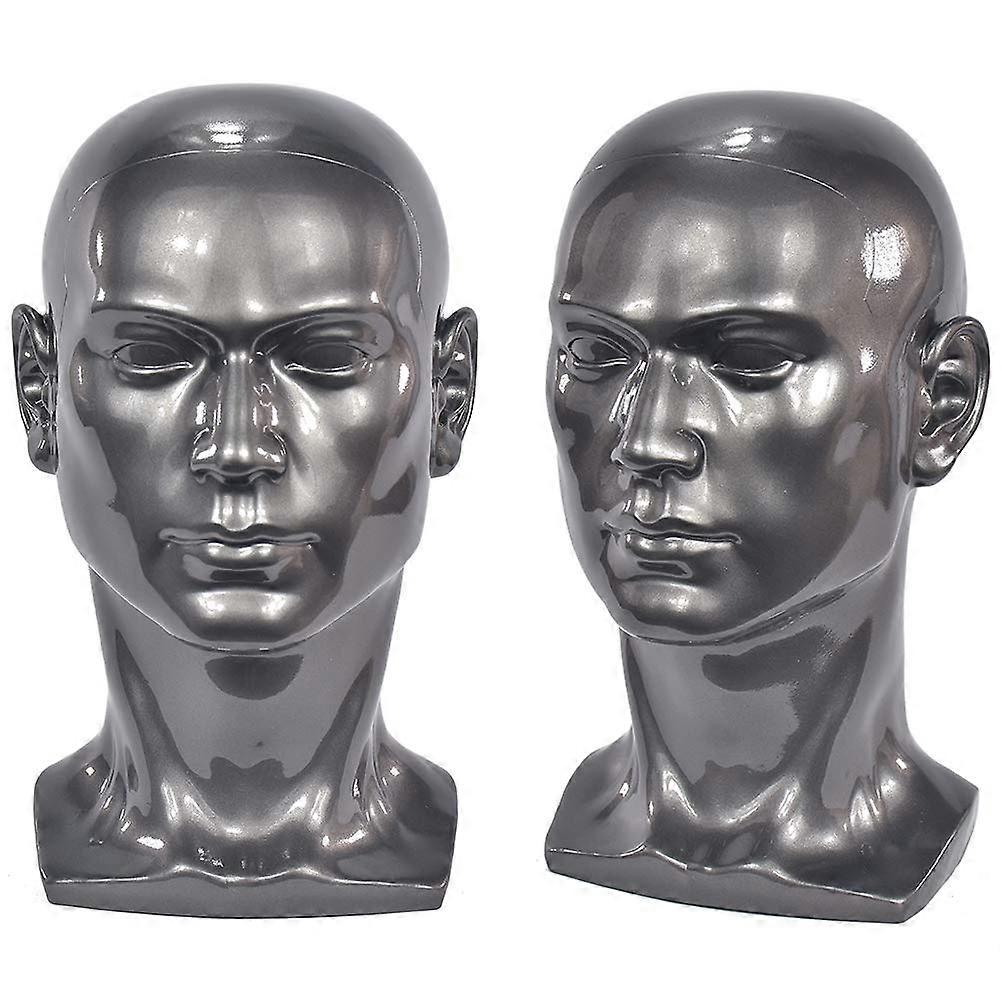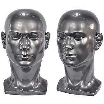 Mannequin Head for Display Headsets and Headphones, Hats, Wigs, Jewelry, Model L30HH, Glossy Metallic Gray