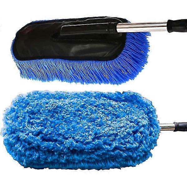 Microfiber Car Duster Wash Head with Extendable Handle for Exterior and Interior, Blue