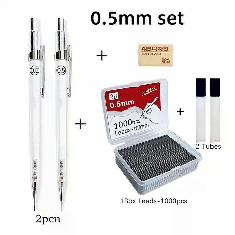 Transparent Mechanical Pencils 05 07 09mm with Lead 2B 60mm Art Drawing Automatic Pencil Replaceable Refills with 2 Tubes
